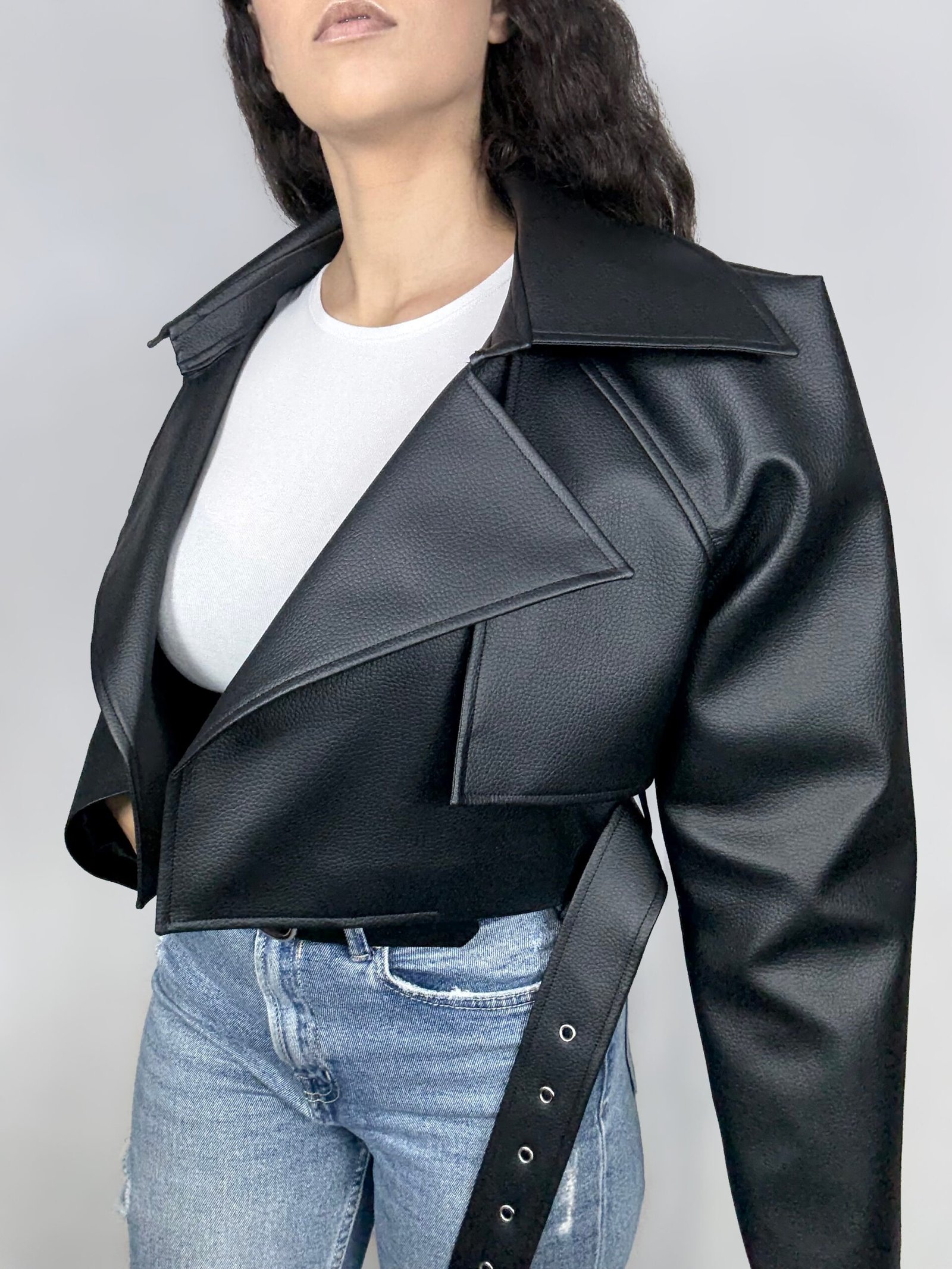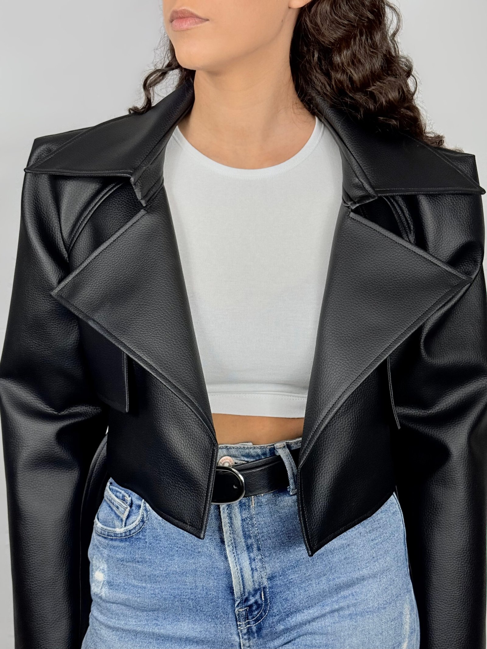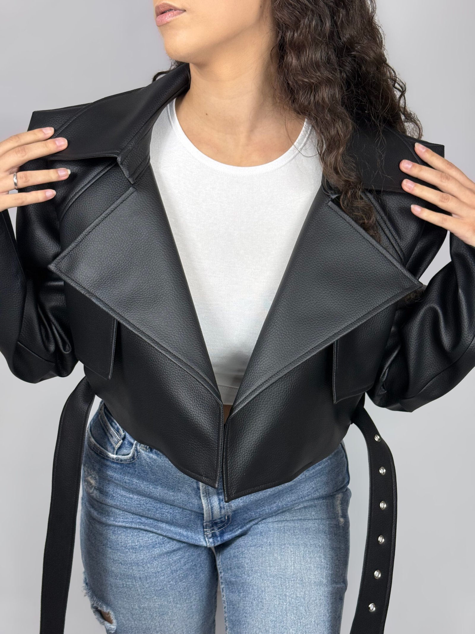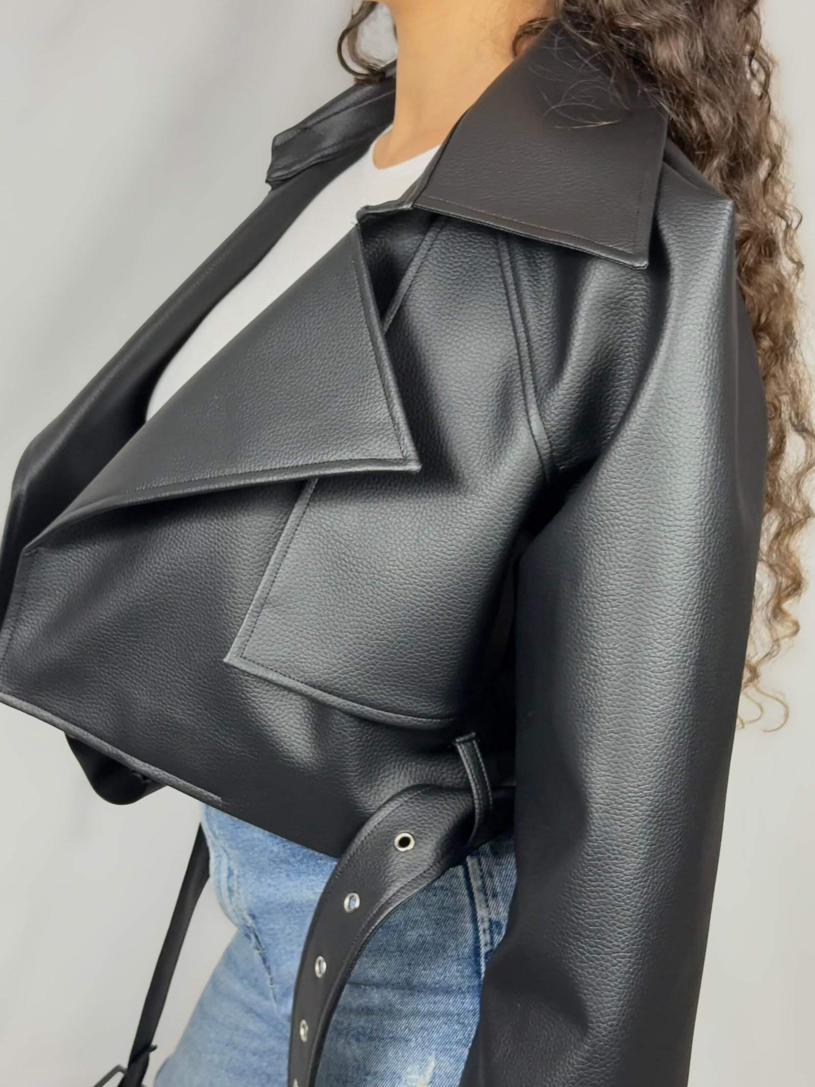 Blusão Biker Curto Oversize Efeito Pele